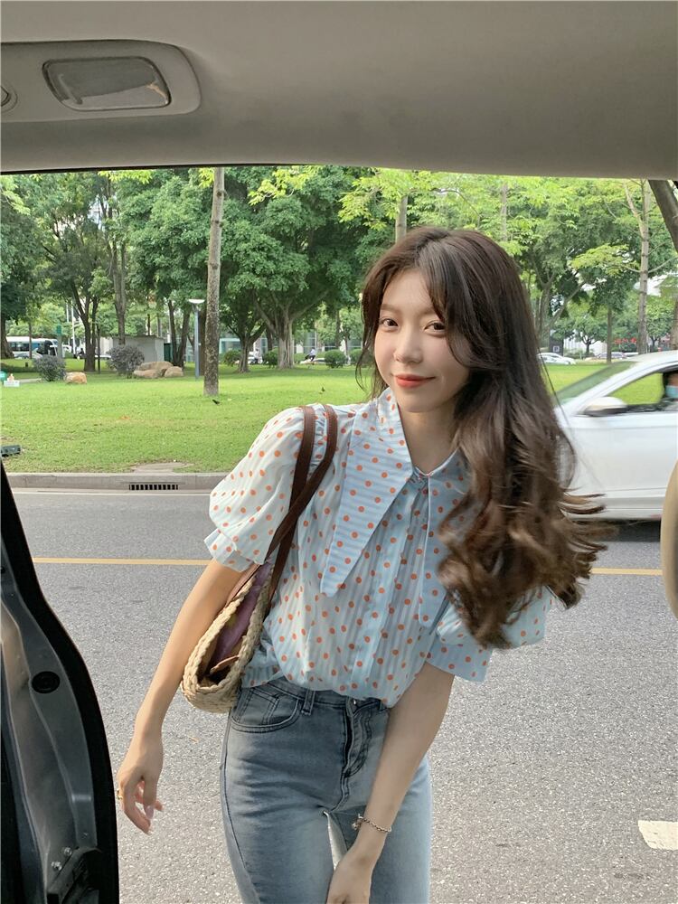French gentle and sweet puff sleeve top women's summer 2022 new design small short-sleeved polka dot shirt 大人ガーリー スウィート キュート カジュアル サマー 夏物 s576134834849073