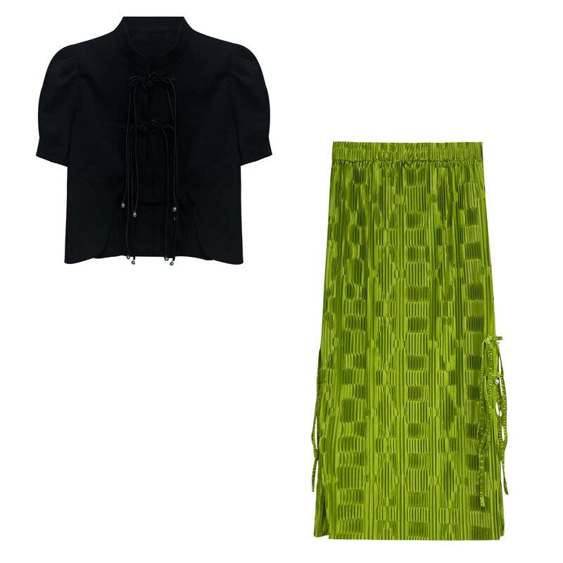 Pan button short top women's design sense niche summer French high-end puff sleeves short-sleeved black stand-up collar new Chinese style ショート ブラック サマー 夏物 s576154445409200