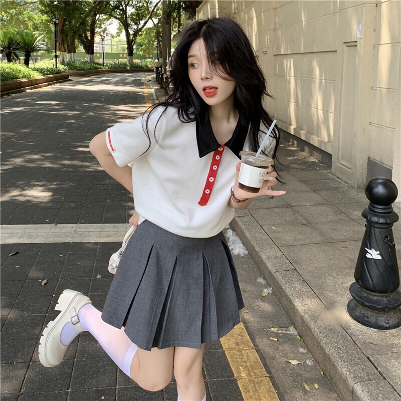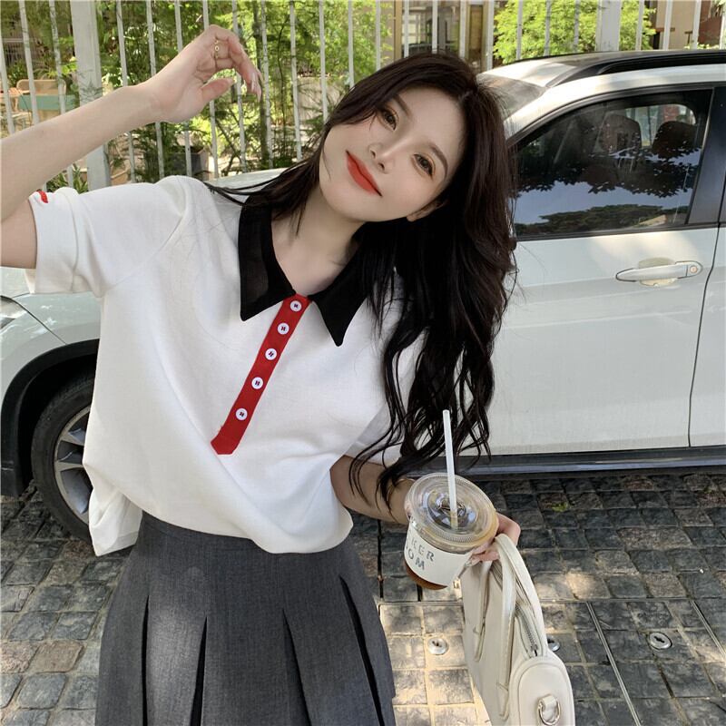 White polo collar short-sleeved T-shirt women's summer net red style 2022 new design sense of small students' clothes ホワイト レッド サマー 夏物 Tシャツ s576166289949774