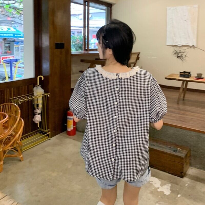 Puff sleeve top women's design sense niche summer French sweet chic chic double-sided plaid shirt 大人ガーリー スウィート キュート カジュアル サマー 夏物 s576119591376704