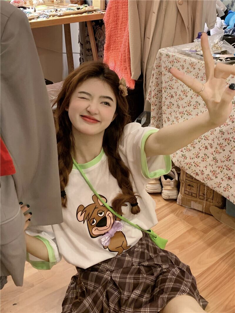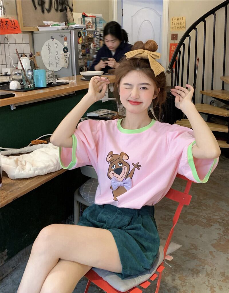 Pink cartoon short-sleeved T-shirt women's summer 2022 new design sense niche sweet cute top ins tide ピンク 大人ガーリー スウィート キュート カジュアル サマー 夏物 Tシャツ s576153546500377
