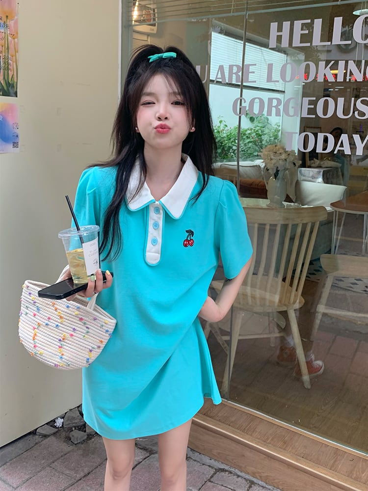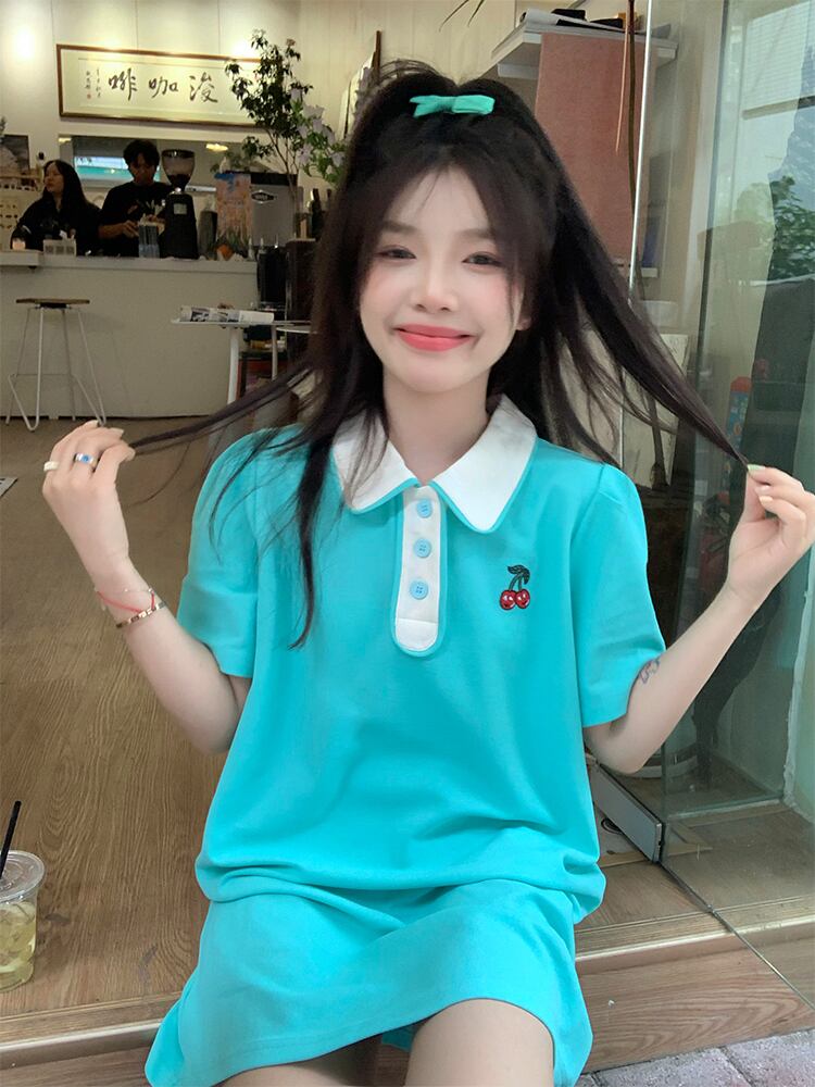 Polo collar T-shirt dress women's summer 2022 new small eign style age-reducing pure vitality skirt サマー 夏物 スカート Tシャツ ピュア s576128083719274