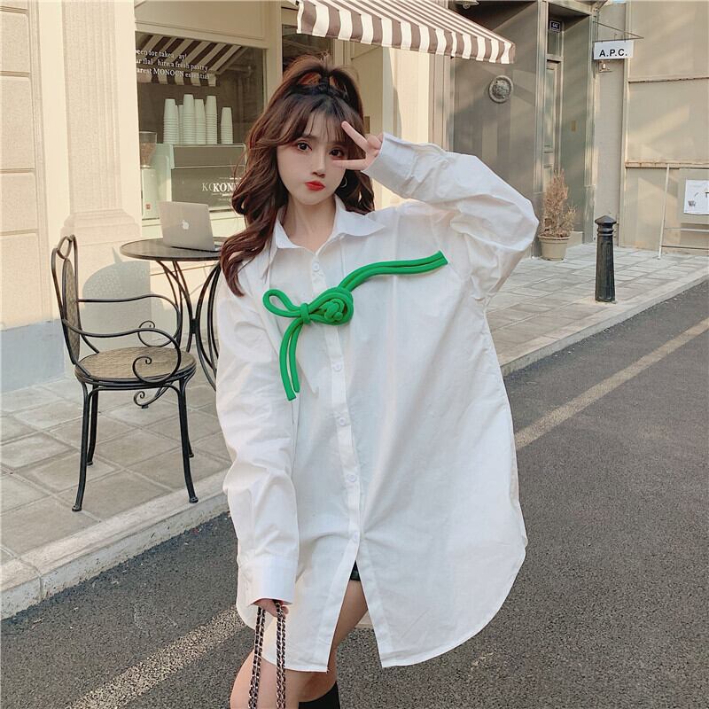 White long-sleeved shirt women's autumn and winter design loose shirt 2022 new retro Hong Kong style mid-length top ロング ホワイト レトロ オータム 秋物 ウィンター 冬物 s576138183153152