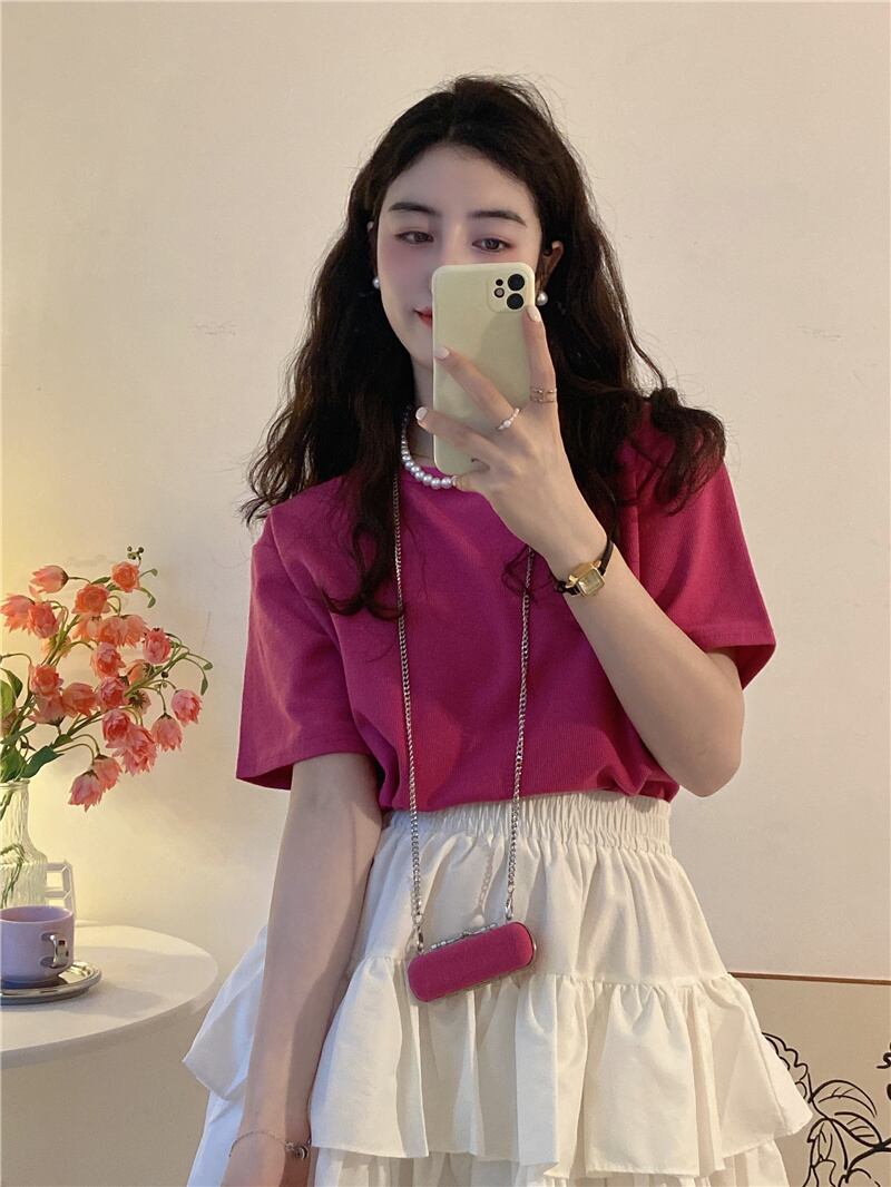 Pure cotton short-sleeved T-shirt women's clothing design sense niche summer 2022 new green shoulder small top ins tide コットン サマー 夏物 Tシャツ グリーン s57618839382188