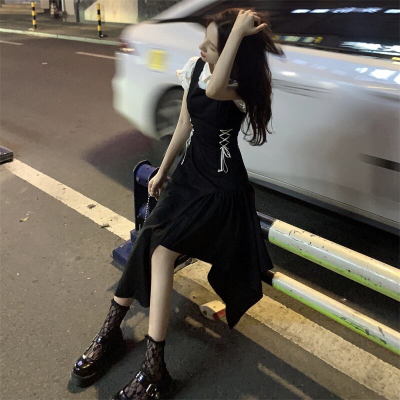 Black suspender skirt women's summer design sense niche suspender dress 2022 new irregular temperament long skirt ロング ブラック サマー 夏物 スカート s576193176015295