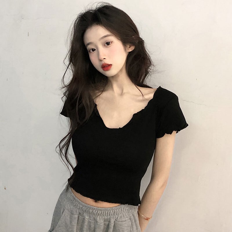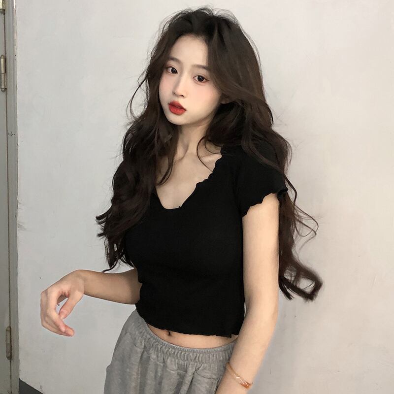 Hot short-sleeved T-shirt women's design sense niche summer 2022 new chic black slim short top ins tide ショート ブラック サマー 夏物 スリム Tシャツ s576171162110320