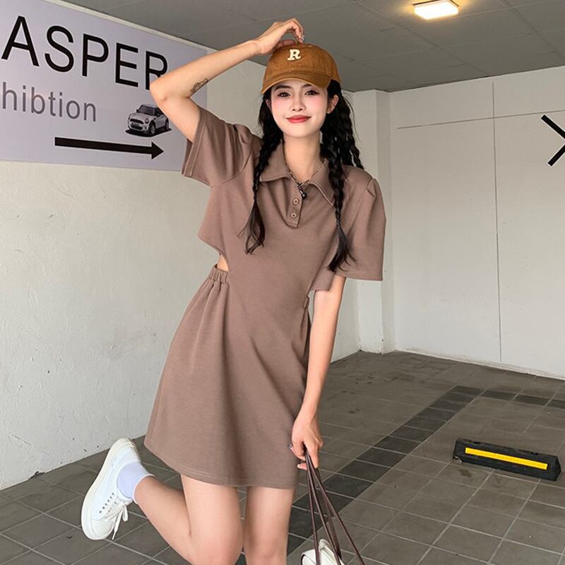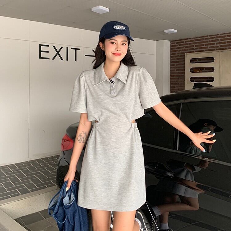 Polo collar dress women's summer design sense niche Hong Kong flavor retro chic sweet chic waistless short skirt ショート レトロ 大人ガーリー スウィート キュート カジュアル サマー 夏物 スカート s576126852122432