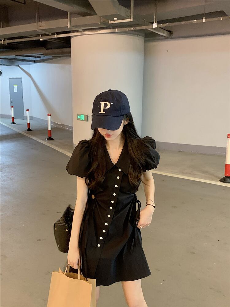 Black puff sleeve dress female summer small 2022 new style chic temperament gentle and chic skirt ブラック サマー 夏物 スカート s576146843410228