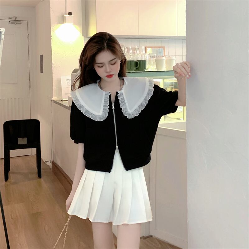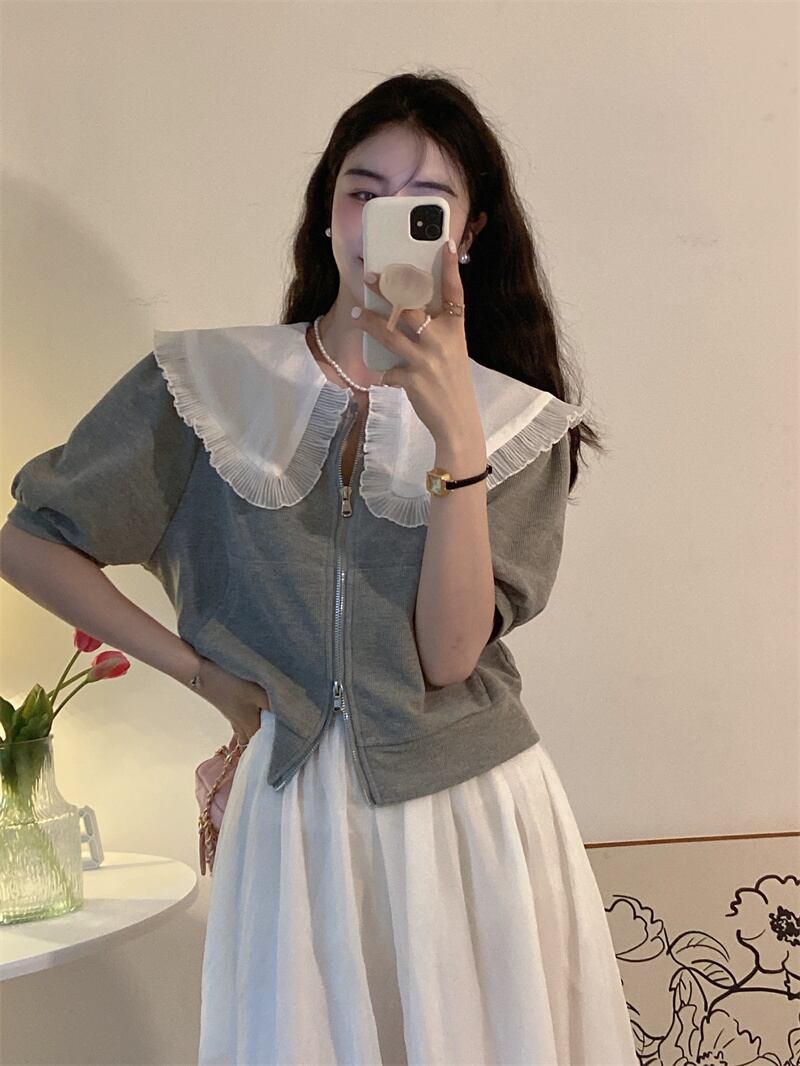 French retro doll collar top women's summer design sense niche senior 2022 new black puff sleeve shirt ブラック レトロ サマー 夏物 s576152016832740