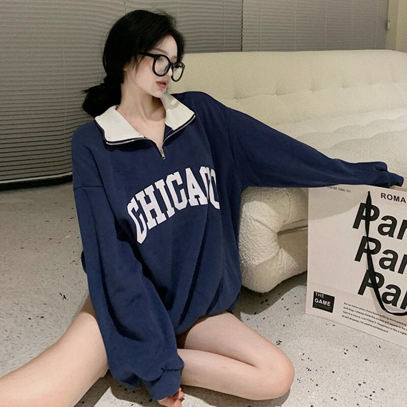 Spring and autumn 2022 new version of the letter half zipper American retro gray sweater loose outer top women's clothing レトロ スプリング 春物 オータム 秋物 s57619908241810