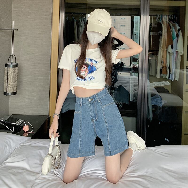 Sweet and cool denim shorts women's summer 2022 new chic Hong Kong flavor small tall waist loose wide-leg pants trendy 大人ガーリー スウィート キュート カジュアル サマー 夏物 ショーツ ブルマー s576112276129774