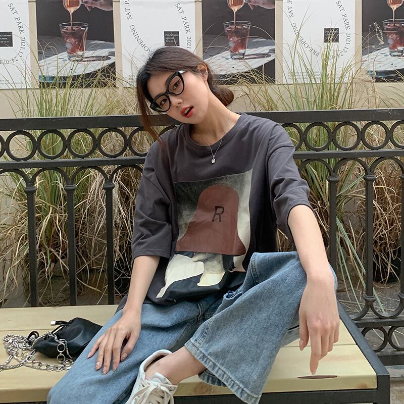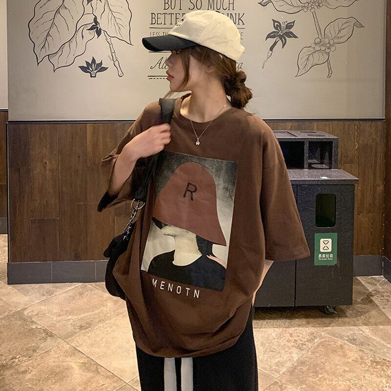 Coffee color short-sleeved T-shirt women's design sense niche summer 2022 new oversize American retro top ins tide レトロ サマー 夏物 Tシャツ s576117312633331