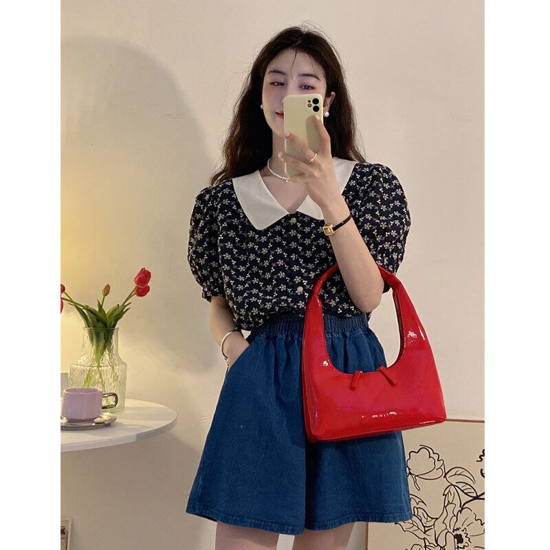 French retro high-end top women's summer design niche 2022 new temperament puff sleeve floral shirt レトロ サマー 夏物 花柄 s576193875119082