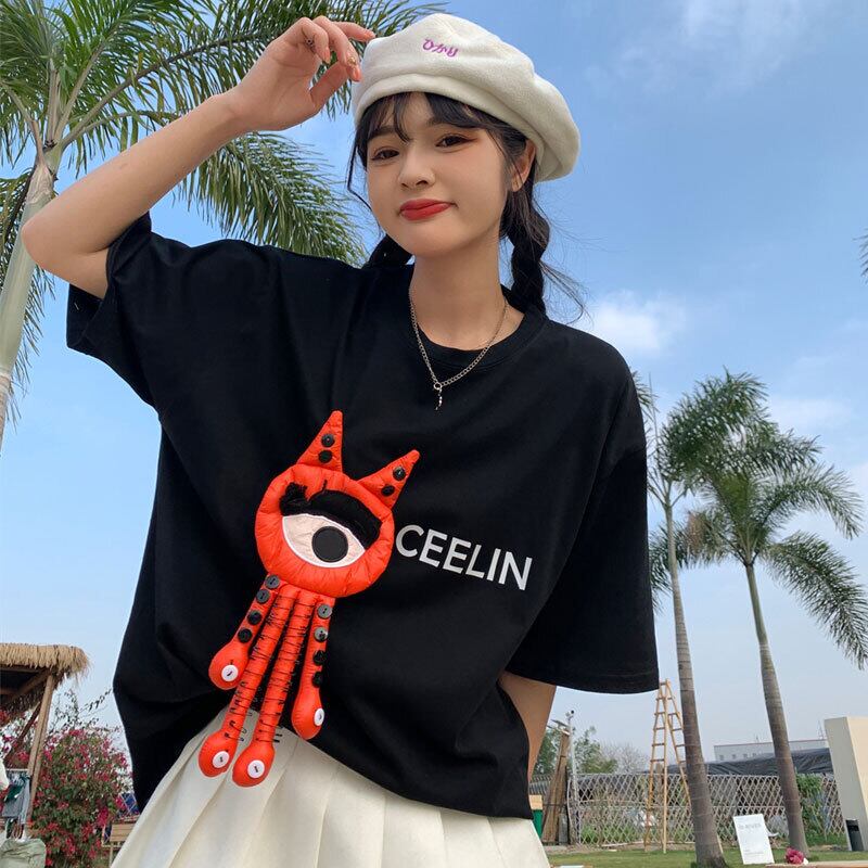 Black short-sleeved T-shirt women's design sense niche summer 2022 new Western style age-reducing version loose student top ブラック サマー 夏物 Tシャツ s576180843917666