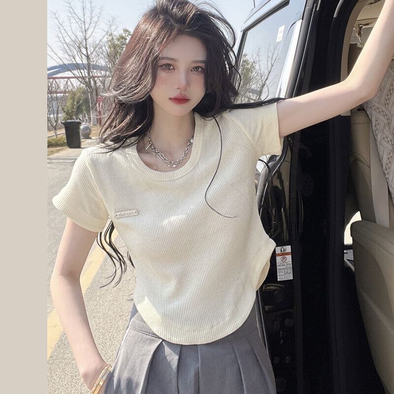 Sweet Spice Girl Short Sleeve T-Shirt Women's Sensation Small Summer Chic Hong Kong Taste Chic BM Slim Short Top Ins Trend ショート 半袖 ハーフスリーブ 大人ガーリー スウィート キュート カジュアル サマー 夏物 スリム Tシャツ s576138641504333