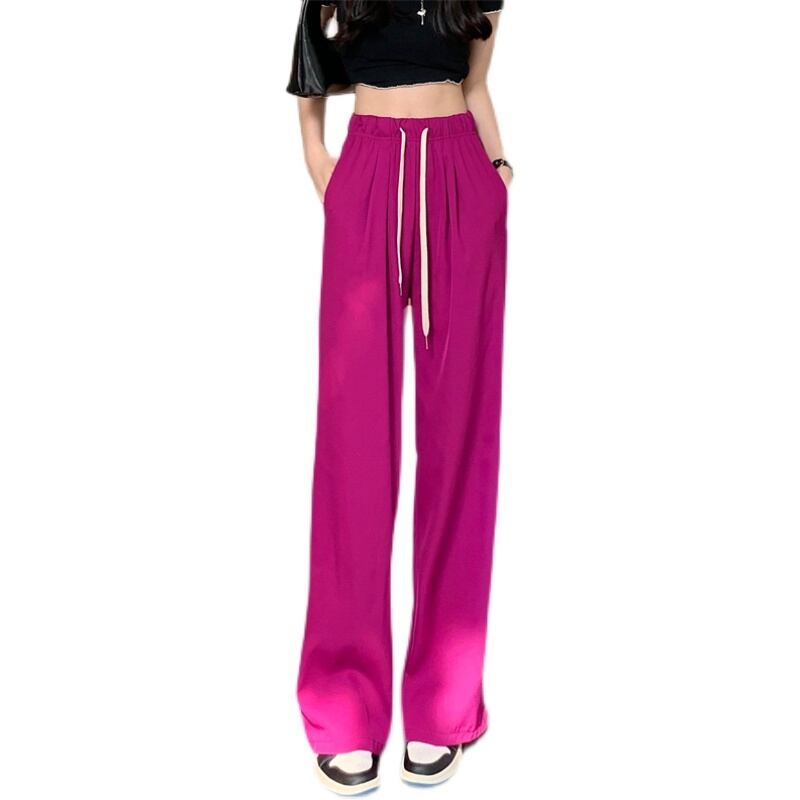 Dragon fruit color wide-leg pants women's high-end drape suit pants summer small tall waist straight loose mopping pants サマー 夏物 s5761373657721