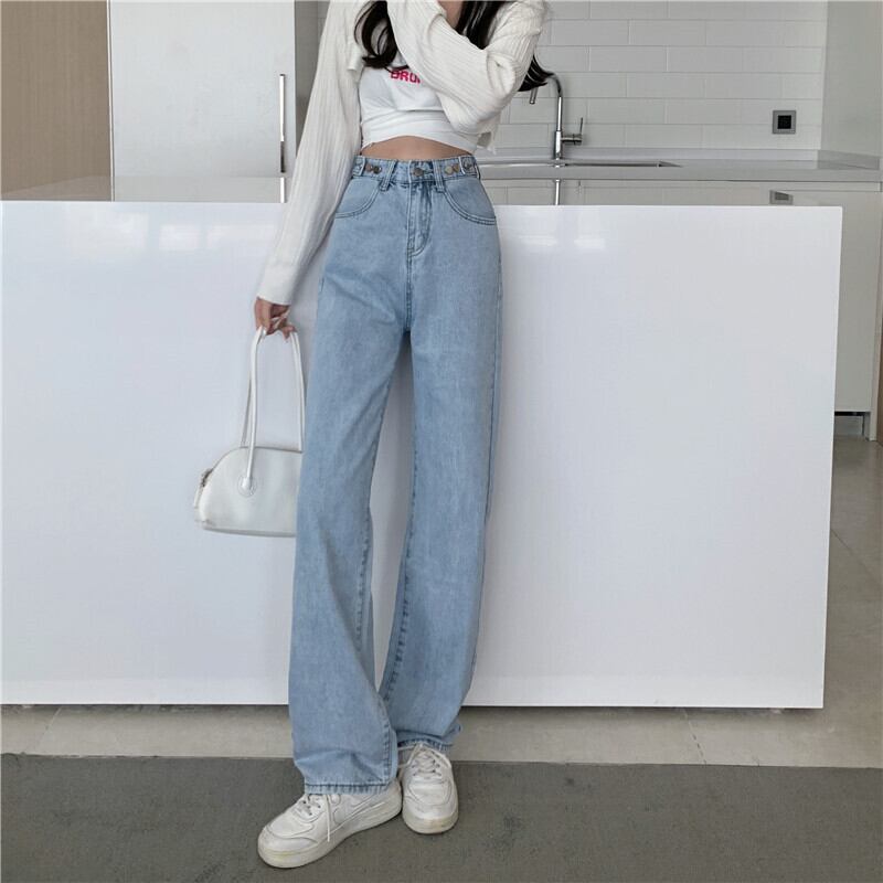 Jeans women's spring straight loose mopping pants 2022 new high-waisted thin all-match wide-leg pants trendy ins スプリング 春物 s576143049953109