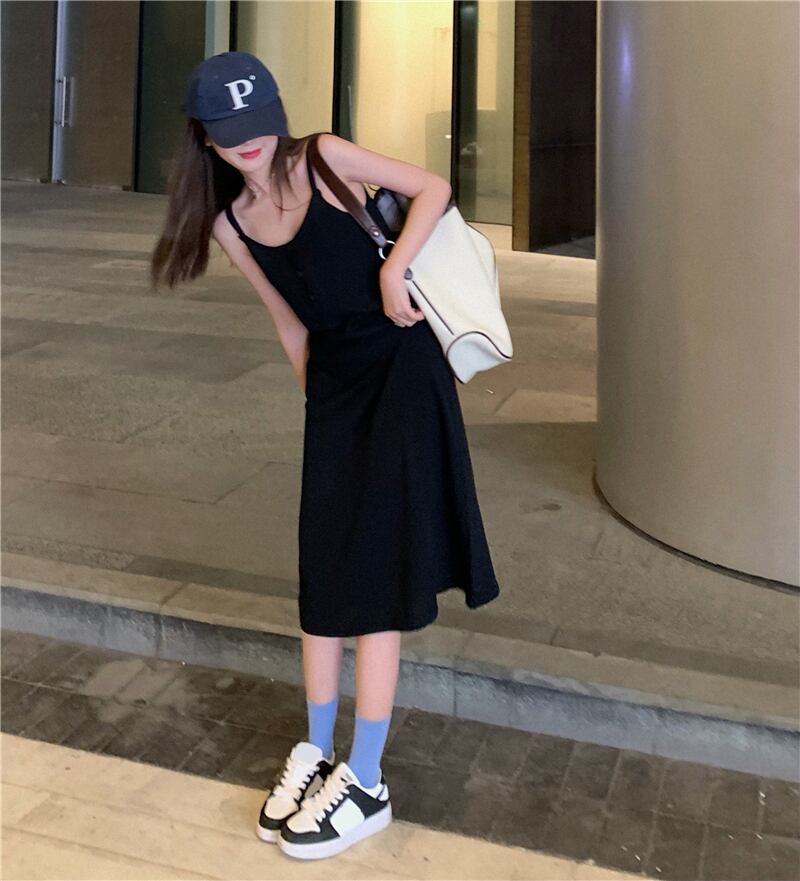 Pure lust black suspender dress women's summer 2022 new small high-end temperament long skirt ロング ブラック サマー 夏物 スカート s576165064631347