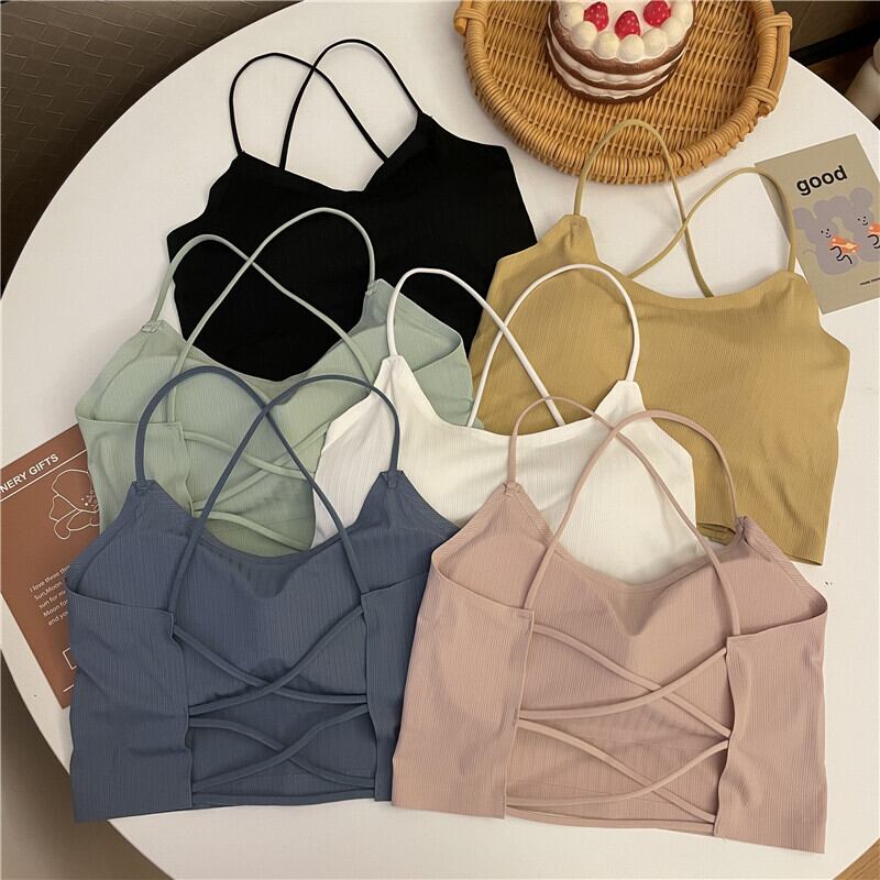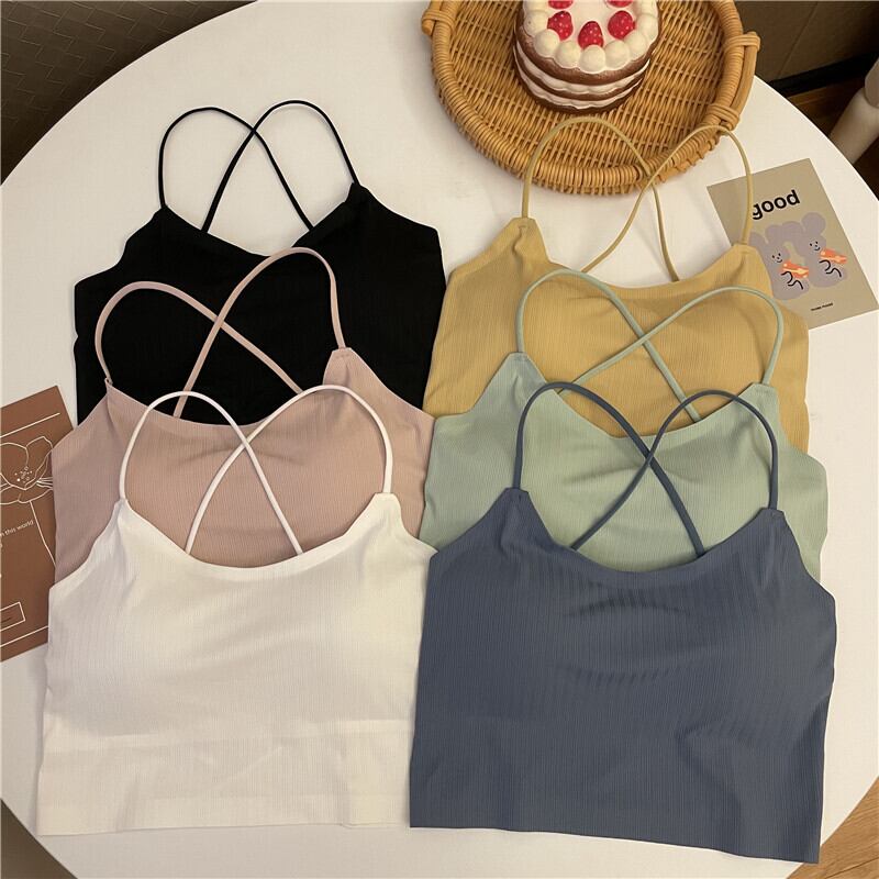 Beautiful back underwear female summer student bra integrated thin straps cross camisole anti-lighting tube top wrap top サマー 夏物 s576179598406829