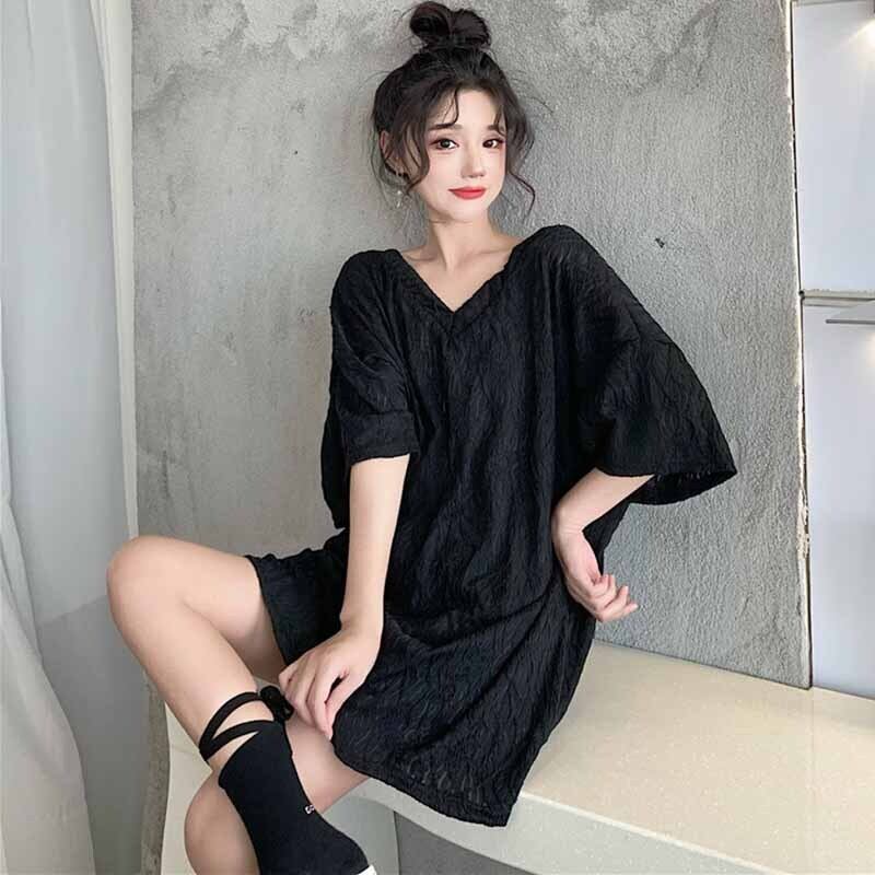 V-neck lace hollow short-sleeved large T-shirt women's summer 2022 ice silk thin clothes chic t-shirt loose top レース サマー 夏物 Vネック シルク Tシャツ s576185914984465