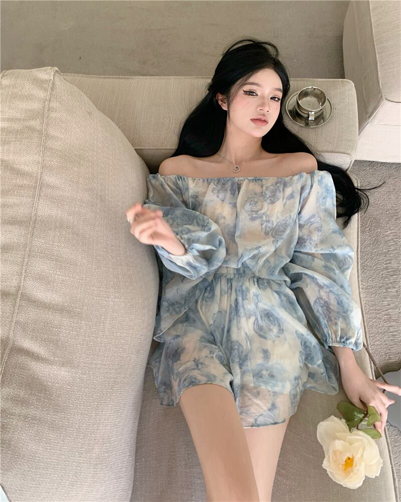 Royal sister style fashion suit female summer 2022 new one-shoulder shirt shorts high-quality small two-piece suit サマー 夏物 ショーツ ブルマー s576141628073397