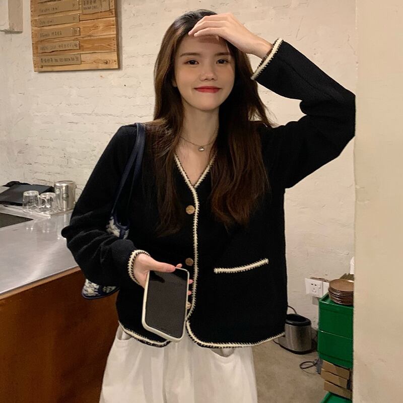 Xiaoxiangfeng sweater coat women's design sense niche spring autumn gentle short top beautiful knitted cardigan ショート カーディガン スプリング 春物 オータム 秋物 s5761392768337