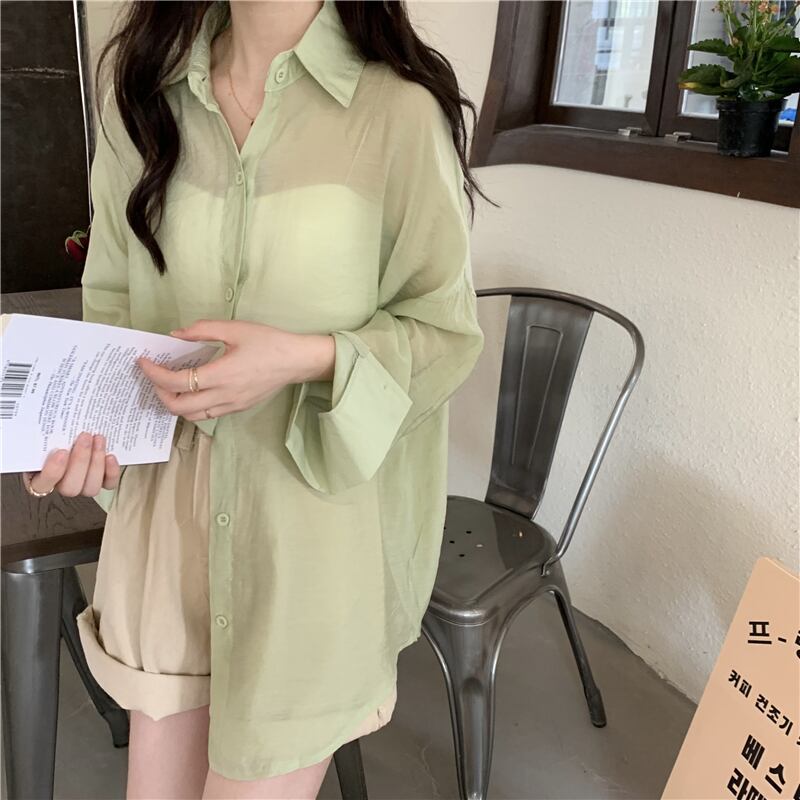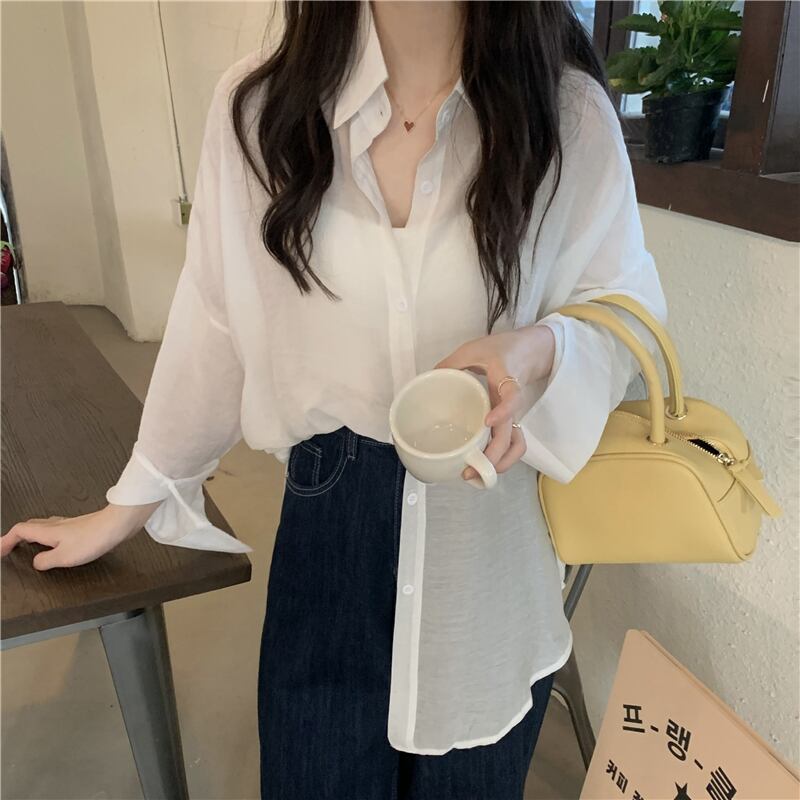 Blue shirt jacket women's summer thin sun protection clothing 2022 new oversize retro Hong Kong style lazy top ブルー レトロ サマー 夏物 s576117527895767