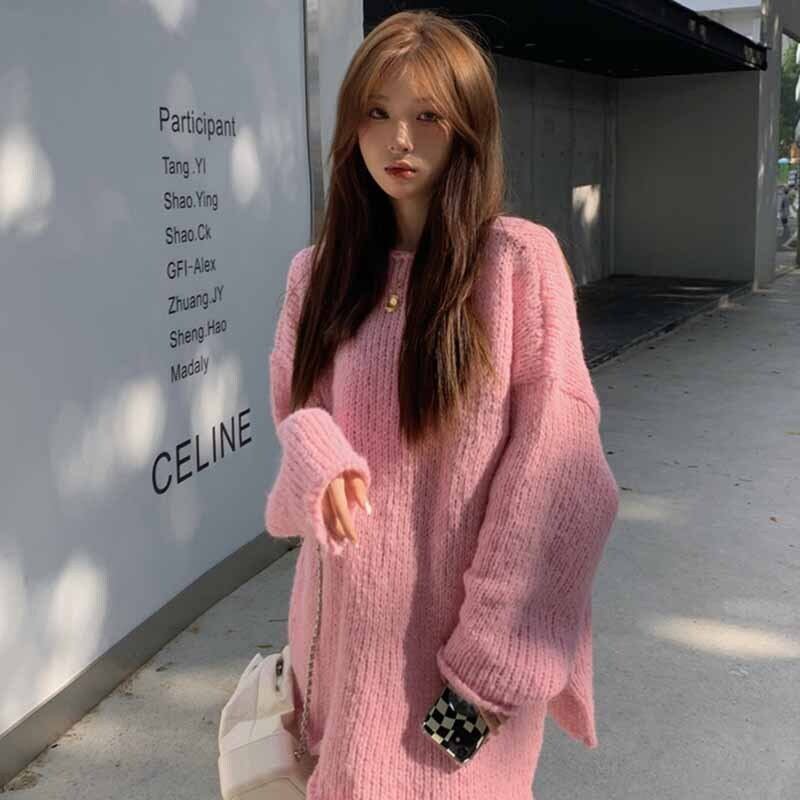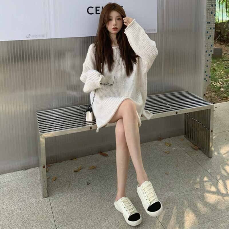 White mid-length sweater women's spring and autumn loose wear 2022 new retro lazy style pullover sweater ホワイト レトロ スプリング 春物 オータム 秋物 s576193613141837