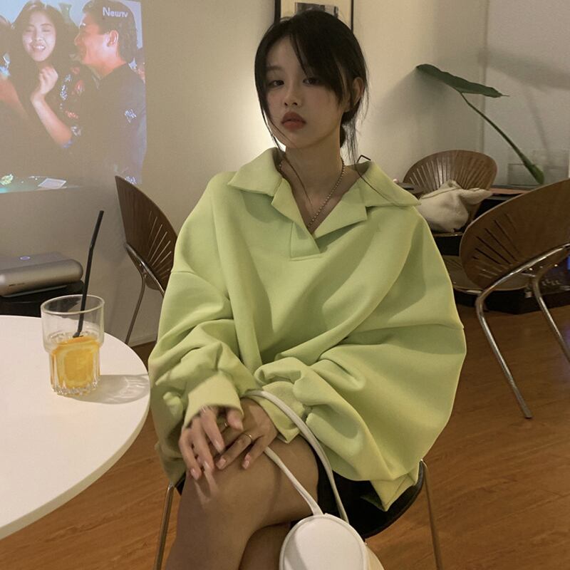 Green Polo collar sweater women's spring and autumn 2022 new loose bf lazy wind small top trendy ins スプリング 春物 オータム 秋物 グリーン s576148706529845