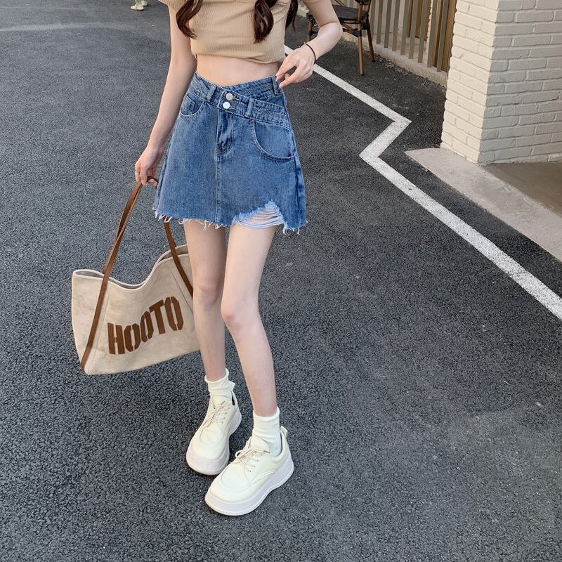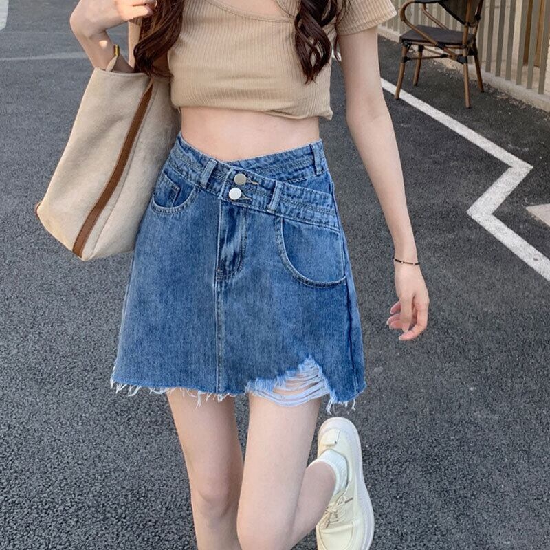 Retro denim skirt women's summer design sense small a-line skirt 2022 new high waist bag hip short skirt ハイウェスト ショート レトロ サマー 夏物 スカート Aライン s576153606582142