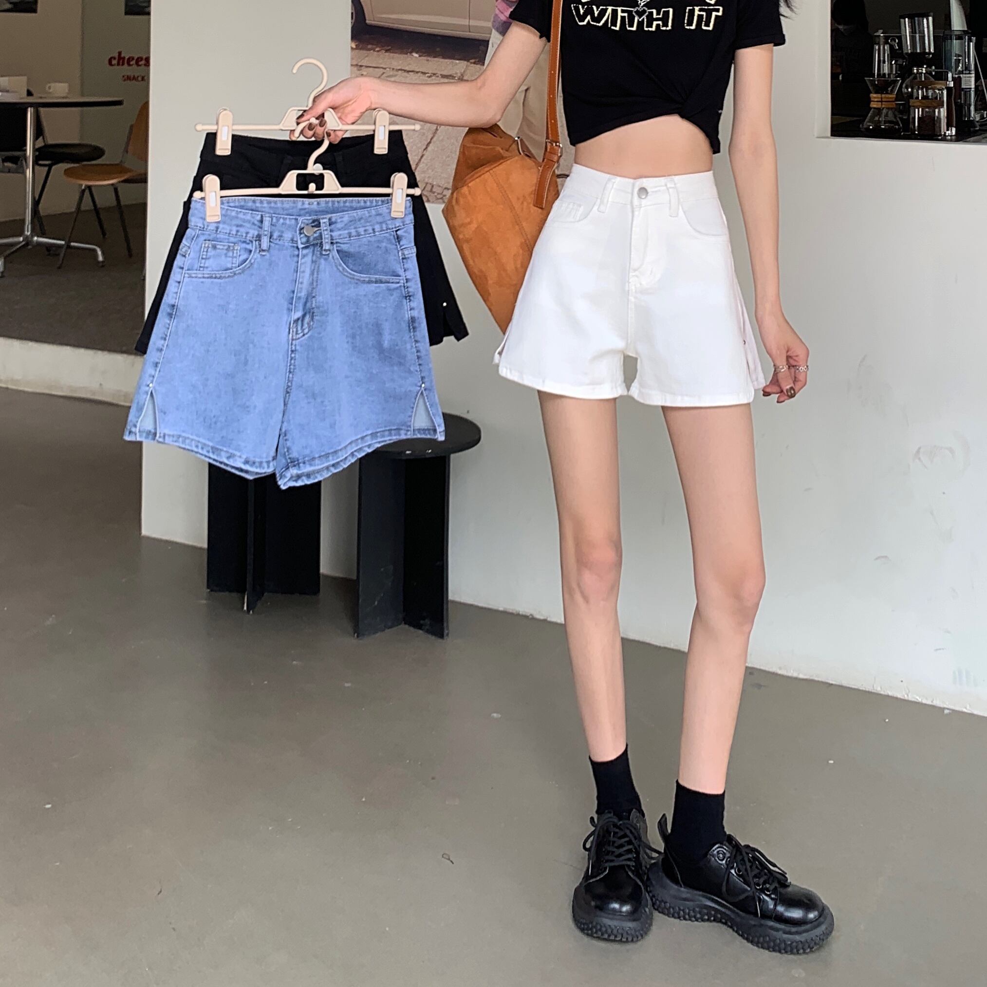 Sweet split denim shorts women's summer 2022 new small tall waist chic wide leg a-line pants 大人ガーリー スウィート キュート カジュアル サマー 夏物 ショーツ ブルマー Aライン ワイドレッグ ワイドパンツ s576110062527173