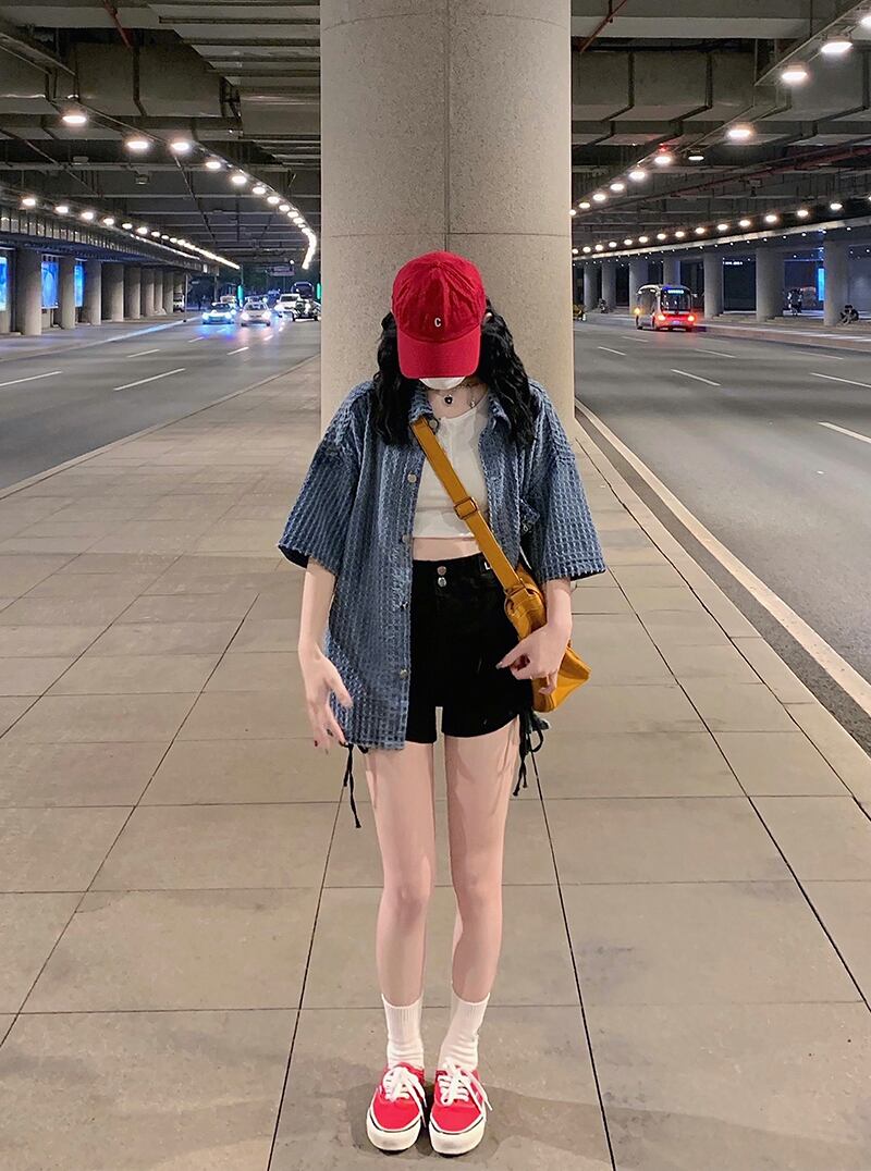 Denim shirt jacket women's design sense niche shirt summer 2022 new chic Hong Kong flavor high-end short-sleeved top サマー 夏物 s576111017979757
