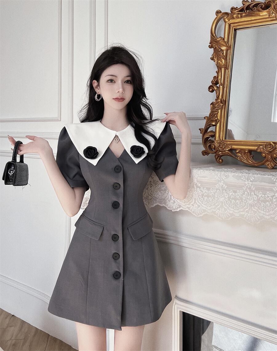 Hepburn style puff sleeve dress female summer little black dress 2022 new French small doll collar short skirt ショート ブラック サマー 夏物 スカート s576171215166332