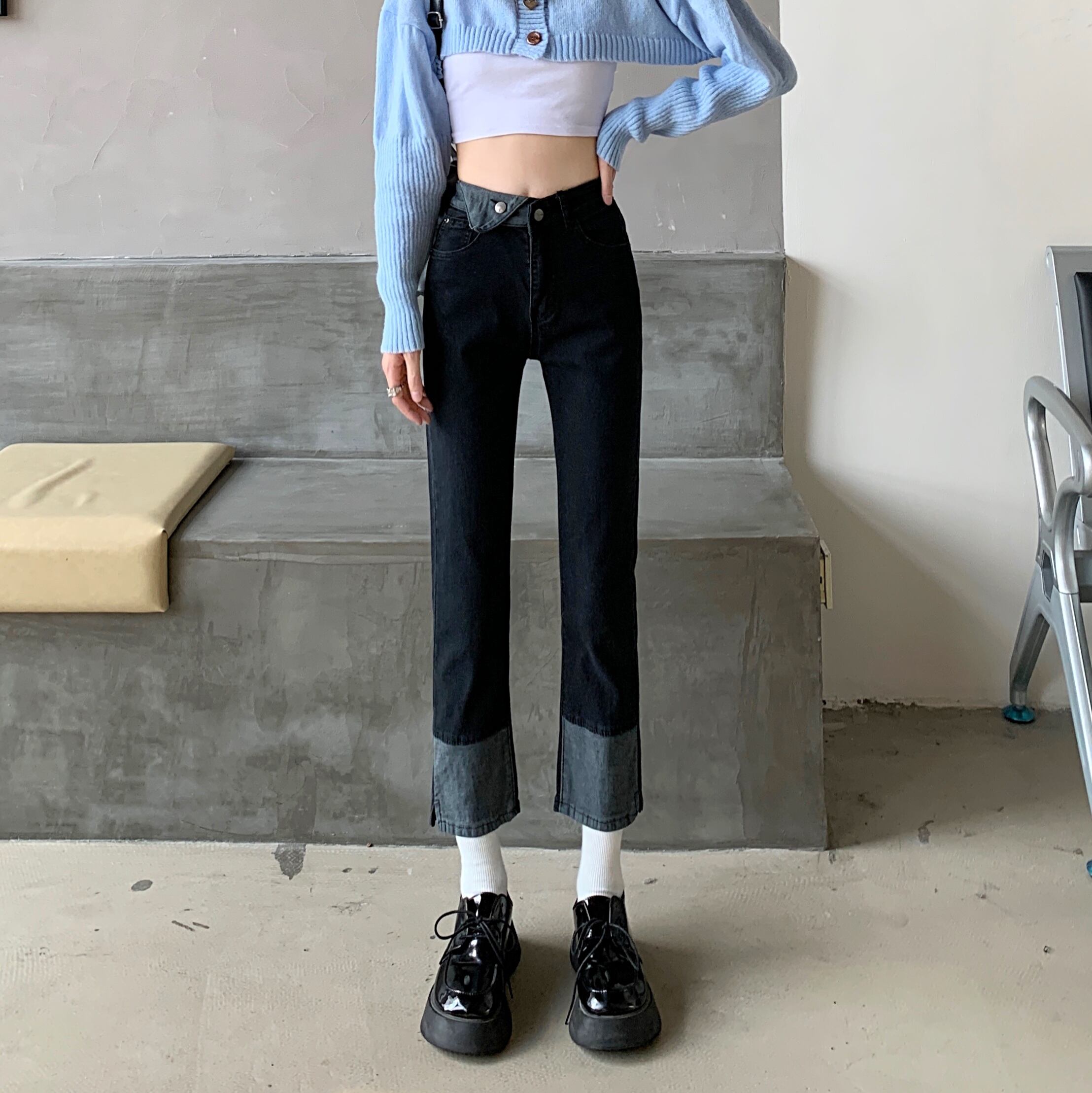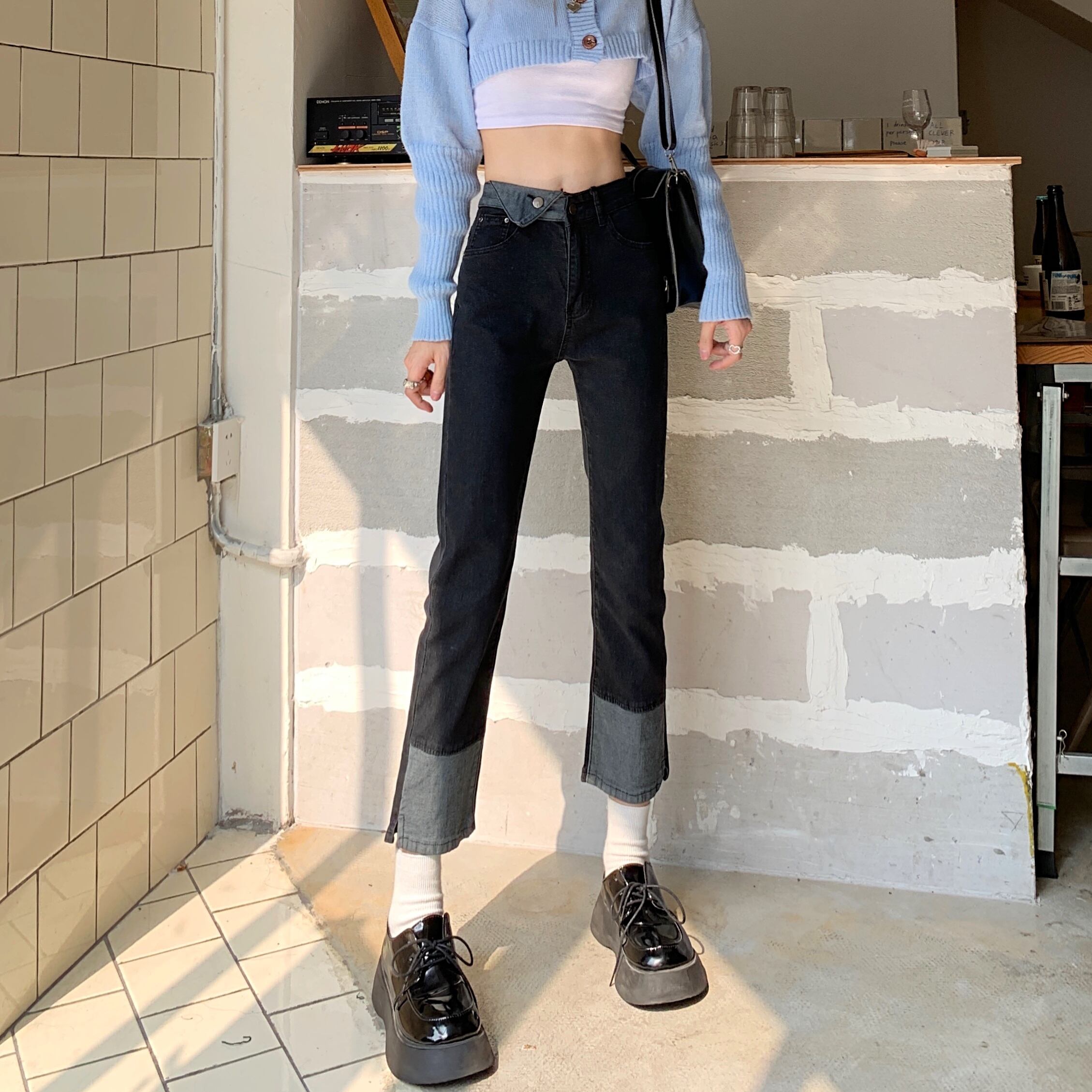 Black high waist jeans women's spring and autumn 2022 new design sense small straight pipe pants trendy ins ハイウェスト ブラック スプリング 春物 オータム 秋物 s576135777201704