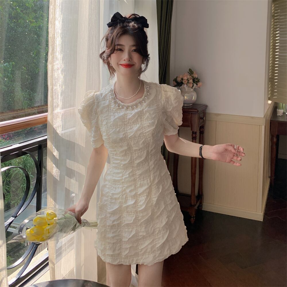 Puff sleeve dress women's clothing design sense niche summer French high-end ladies light luxury temperament slim short skirt ショート サマー 夏物 スカート スリム s576128711831033