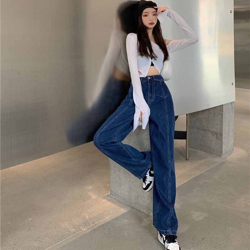 Spring and autumn 2022 new retro slim high waist dad jeans chic slim loose wide leg trousers women's clothing ハイウェスト レトロ スプリング 春物 オータム 秋物 スリム ワイドレッグ ワイドパンツ s57611072308984