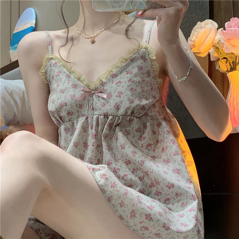 Retro small floral pajamas women's summer 2022 new sweet suspenders two-piece suit loose shorts home clothes レトロ 大人ガーリー スウィート キュート カジュアル サマー 夏物 ショーツ ブルマー 花柄 s576128888919765