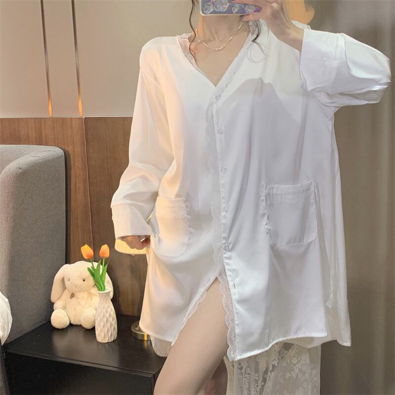 White ice silk shirt nightdress female spring ins wind 2022 new pure desire sexy small net red home service ホワイト レッド スプリング 春物 シルク ピュア s576180237608429