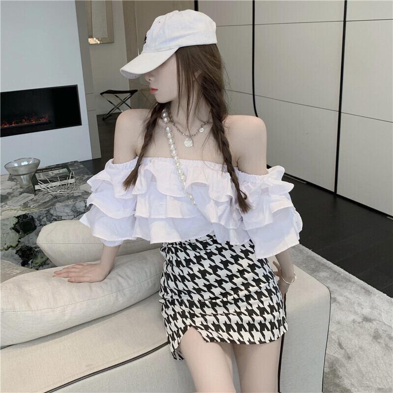 sense lotus leaf lantern sleeve one-shoulder top women's summer sweet suit irregular hip skirt two-piece set ランタンスリーブ 大人ガーリー スウィート キュート カジュアル サマー 夏物 スカート s576130534360095