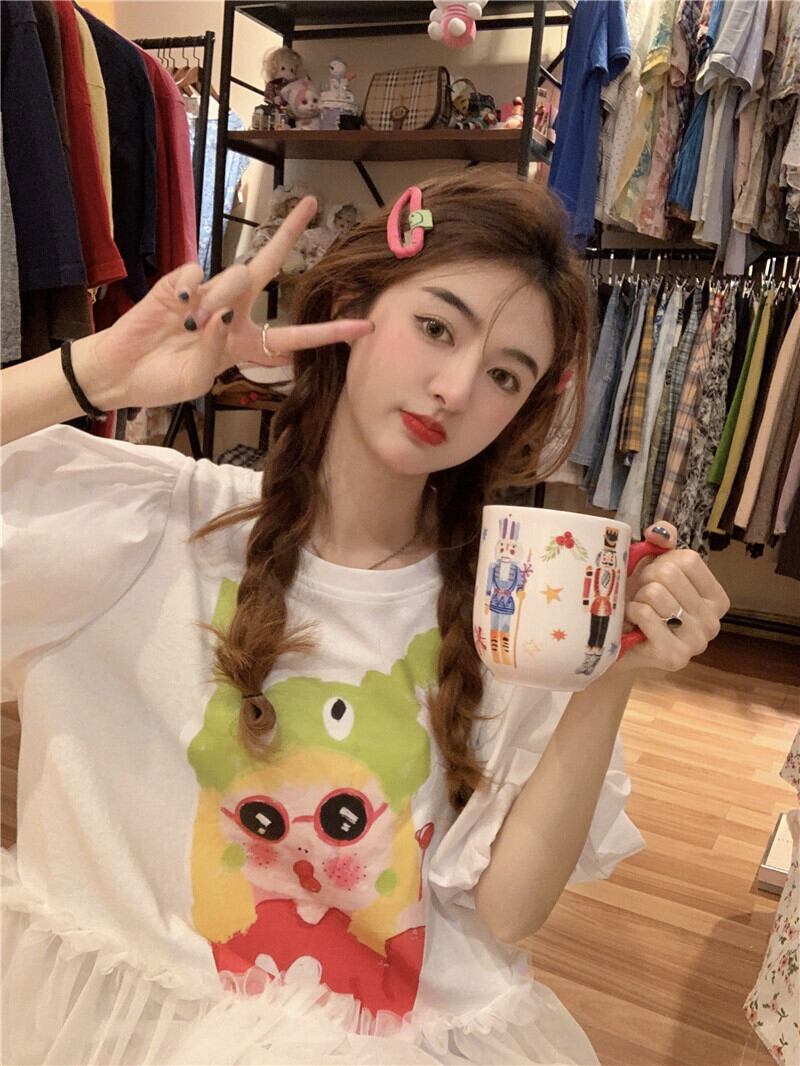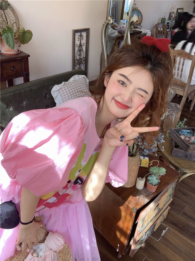 Puff sleeve T-shirt dress female design sense niche summer milk sweet cute chic unique small skirt 大人ガーリー スウィート キュート カジュアル サマー 夏物 スカート Tシャツ s576115079312233