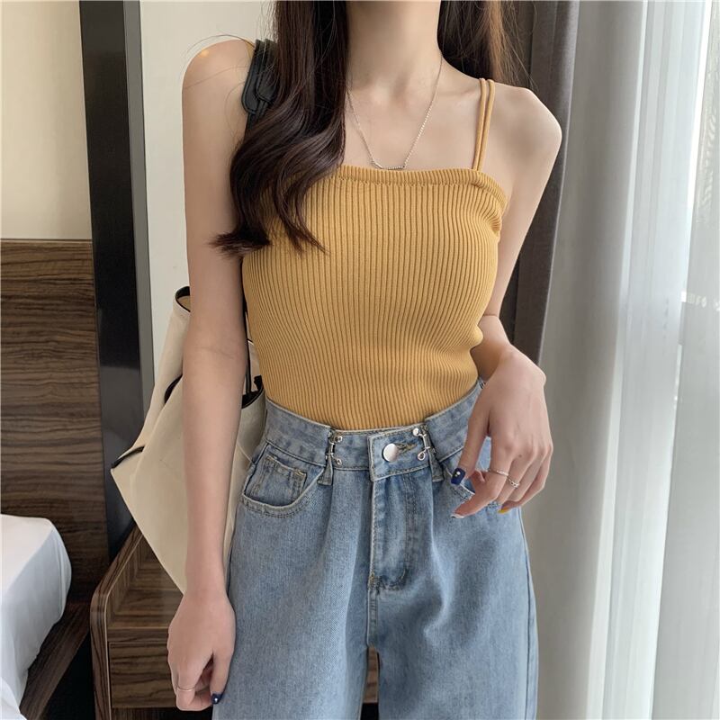 Hot black knitted camisole women's spring basic bottoming bottoming slim sexy tube top short top ショート ブラック スプリング 春物 スリム s576179057462225