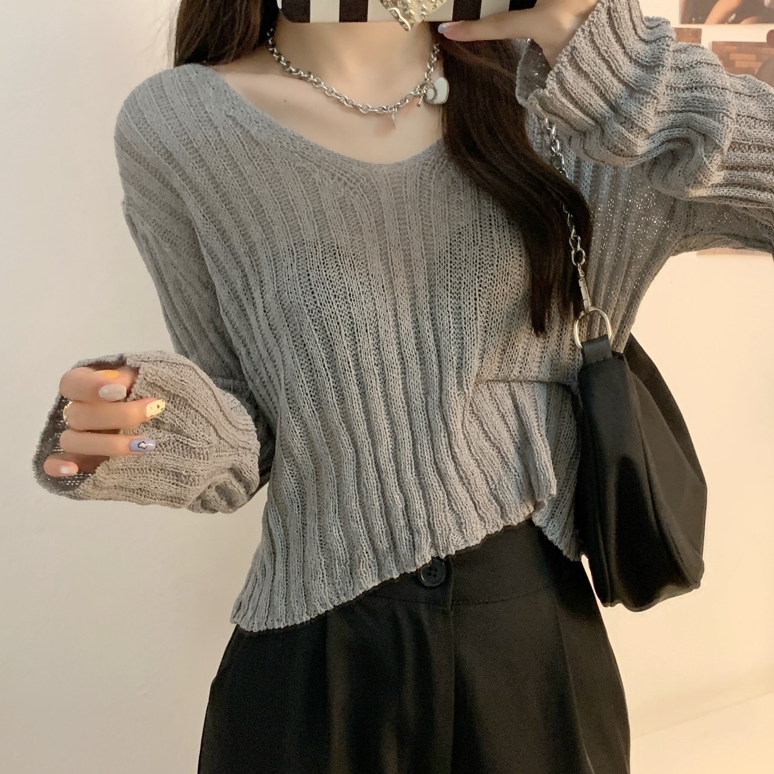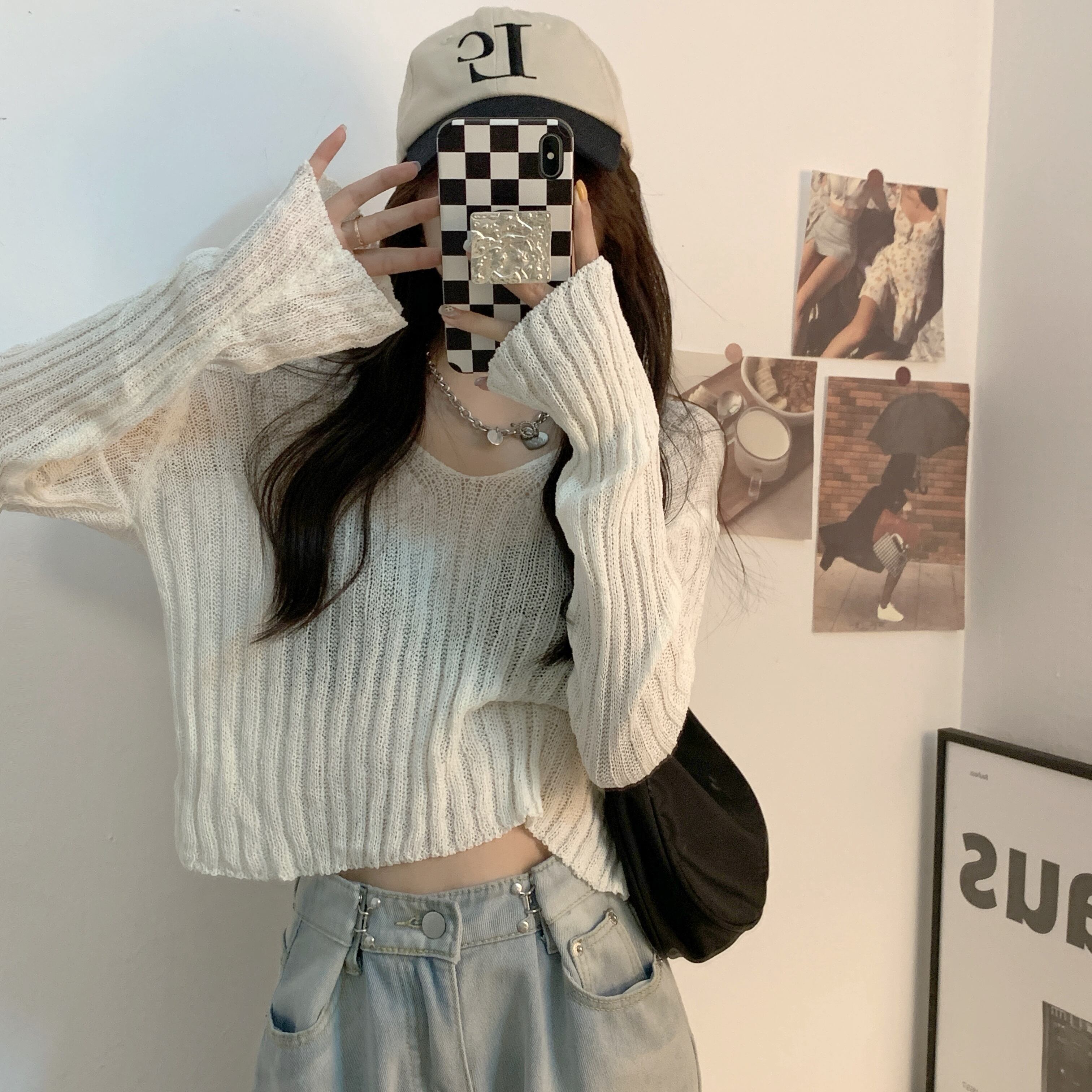 White knitted sweater women's spring and autumn thin sweater 2022 new sweet design sense niche long-sleeved top ロング ホワイト 大人ガーリー スウィート キュート カジュアル スプリング 春物 オータム 秋物 s576186290248438
