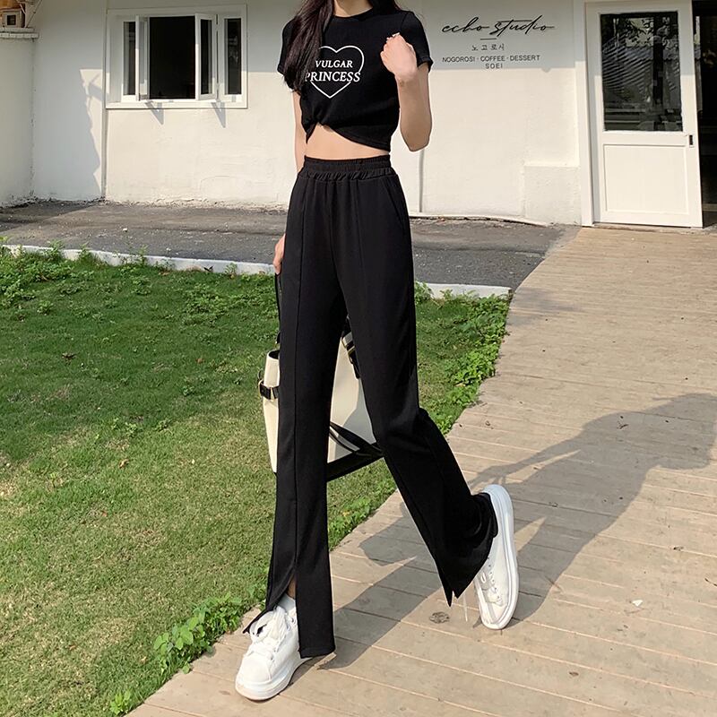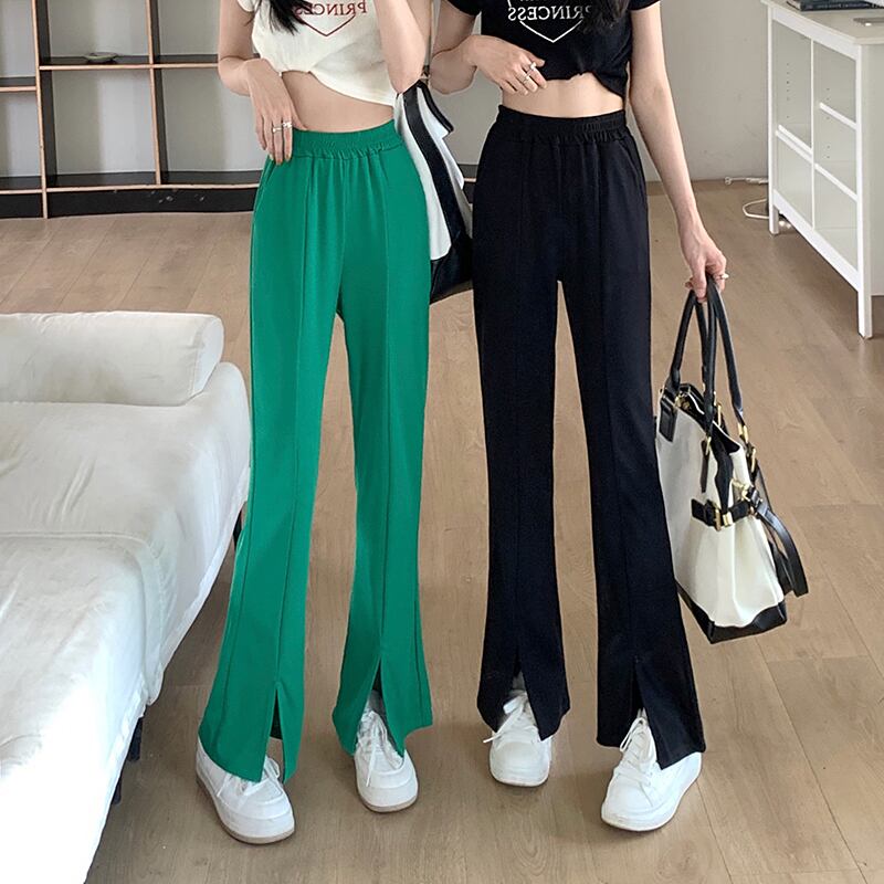 Slit Flare Pants Women's Waist Thin Summer Thin Section 2022 Small Black Pants ブラック サマー 夏物 s576190829963190