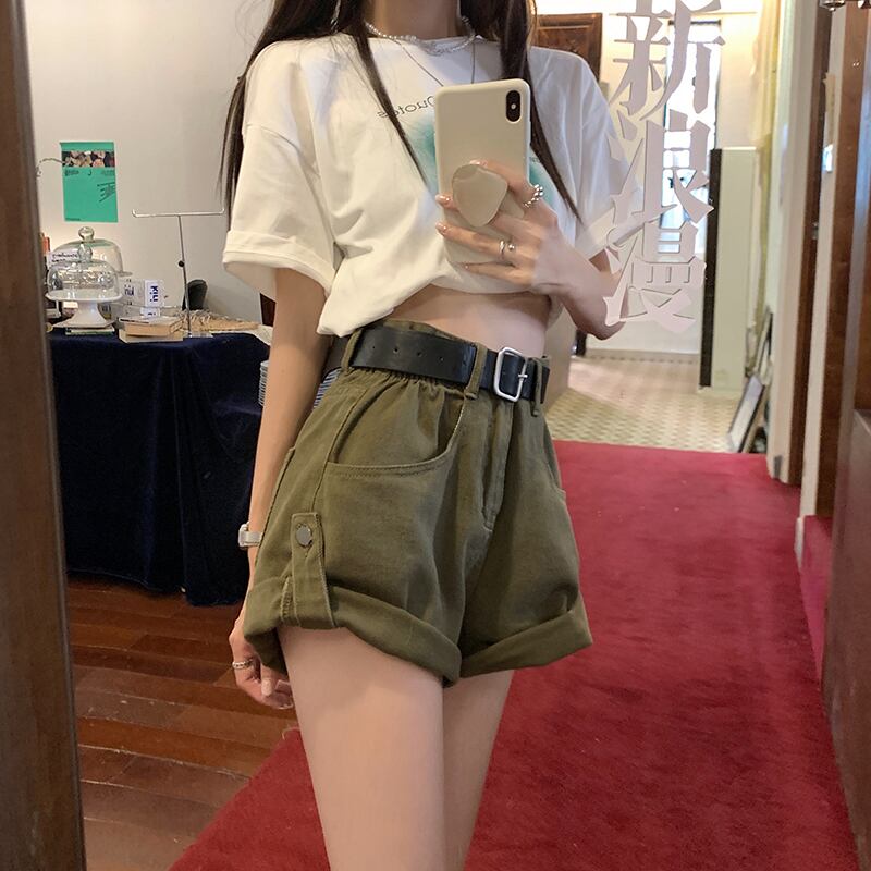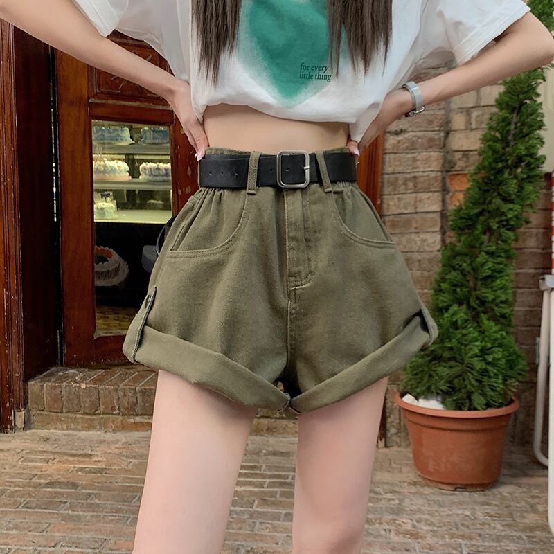 sense high waist loose curly wide leg denim shorts women's summer 2022 new A-line pants pants + belt ハイウェスト サマー 夏物 ハーネス ベルト ショーツ ブルマー Aライン ワイドレッグ ワイドパンツ s576150944263922
