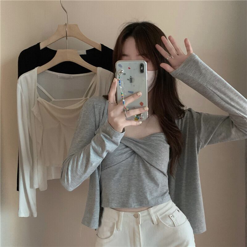 Hot fashion suit female spring 2022 new cardigan jacket camisole net red fried street western style two-piece suit レッド ストリート カーディガン スプリング 春物 s576160002552376
