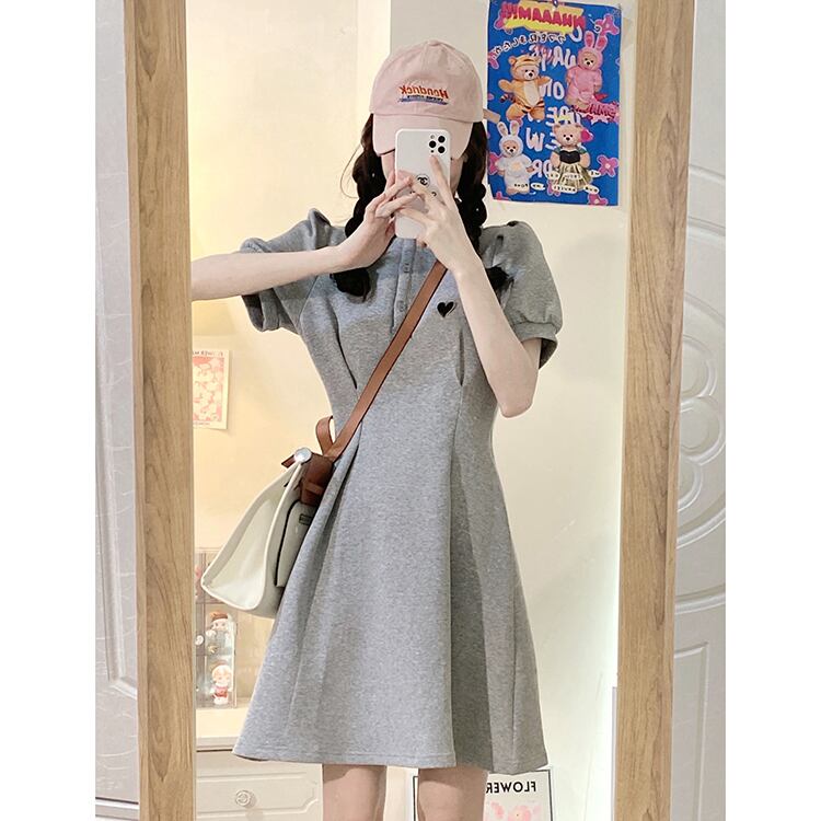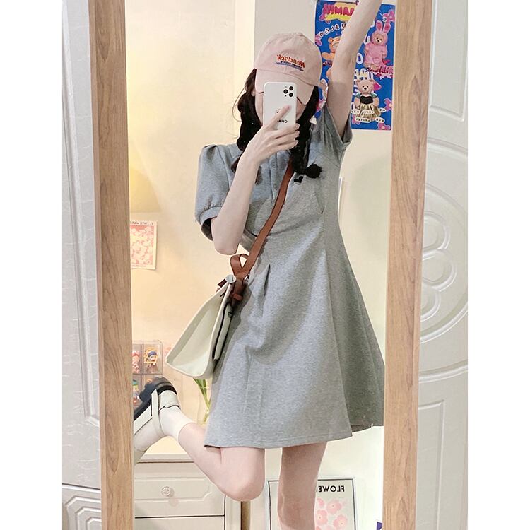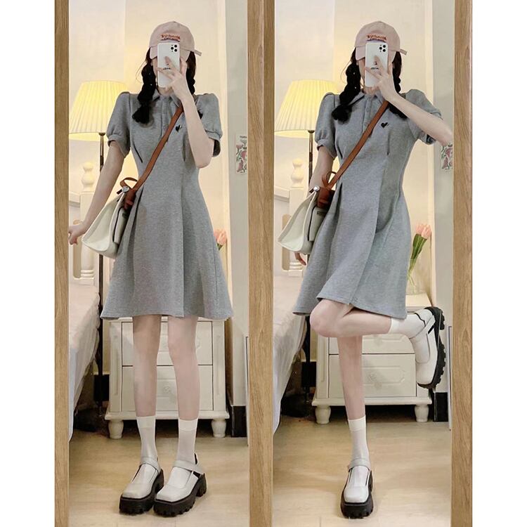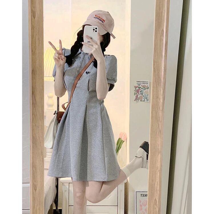 Grey polo collar dress women's summer 2022 new style small, age-reducing, gentle breasts, waist-length skirt サマー 夏物 スカート s576151772043949