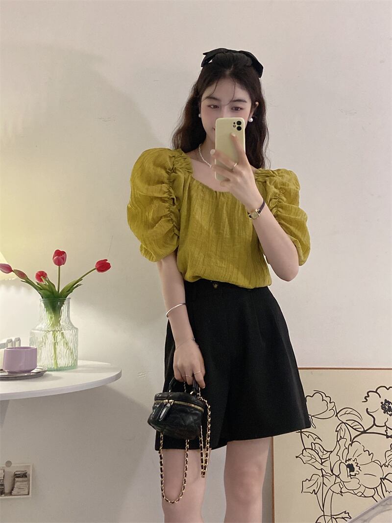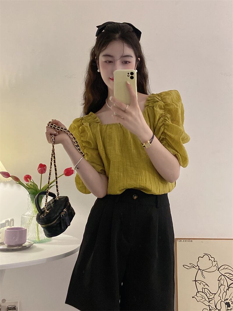 French retro square collar top clothes women's summer high-end design sense niche 2022 new puff sleeve chiffon shirt シフォン レトロ サマー 夏物 スクウェア s576112632146182