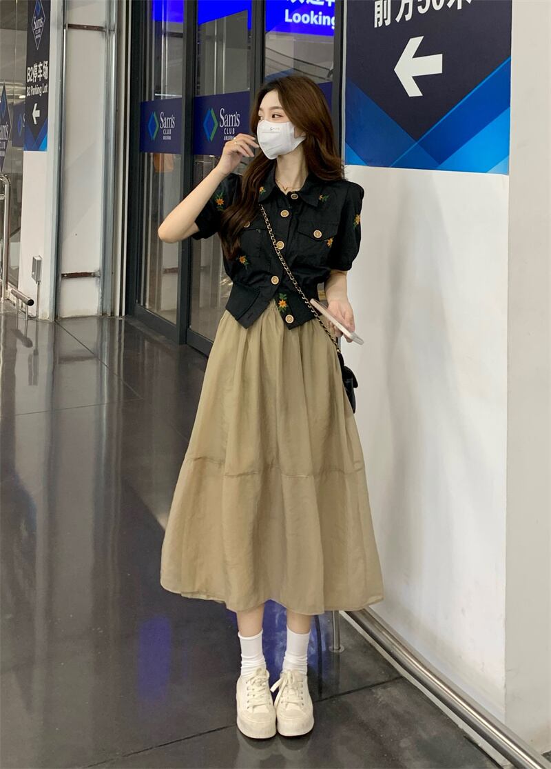 色:アプリコットembroideレッドトップ,ブラックEmbroideレッドトップ,カーキOrganzaスカート