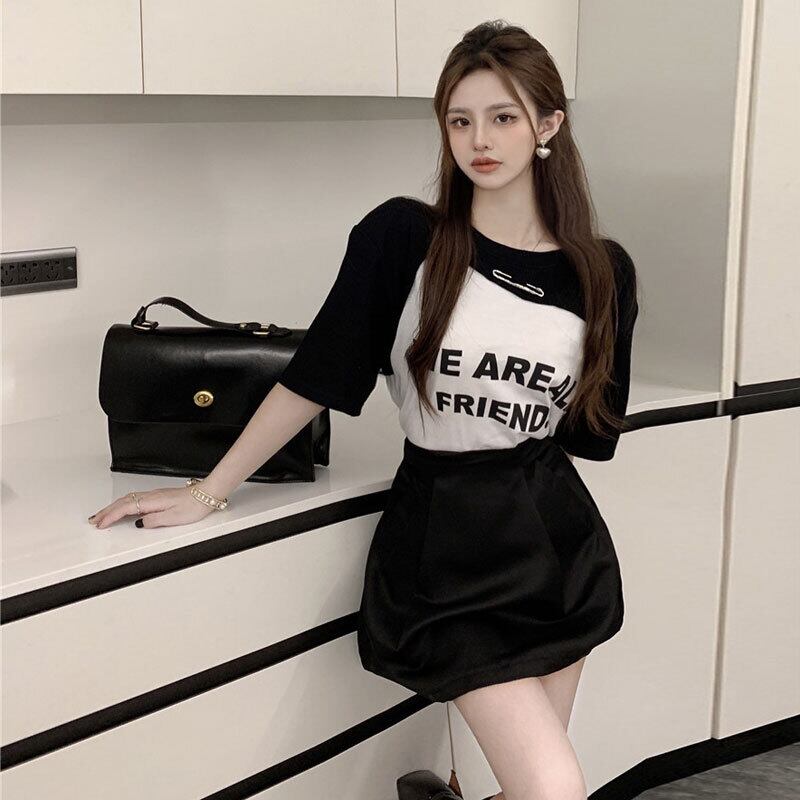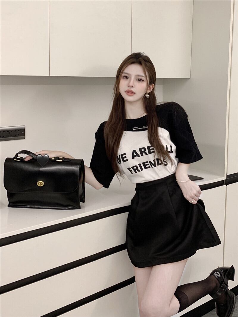 Short-sleeved T-shirt women's design sense niche summer 2022 new chic Hong Kong flavor retro hit color chic top ins tide レトロ サマー 夏物 Tシャツ s576149887696830