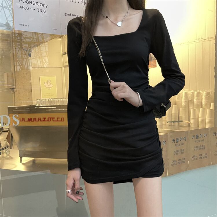 Pure desire sweet black long-sleeved dress women's spring and autumn 2022 new temperament slim bag hip short skirt ショート ロング ブラック 大人ガーリー スウィート キュート カジュアル スプリング 春物 オータム 秋物 スカート スリム s576163738417828